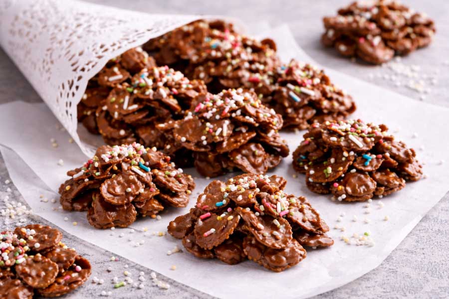 Deilige Cornflakes-knas med enkel sjokoladeoppskrift